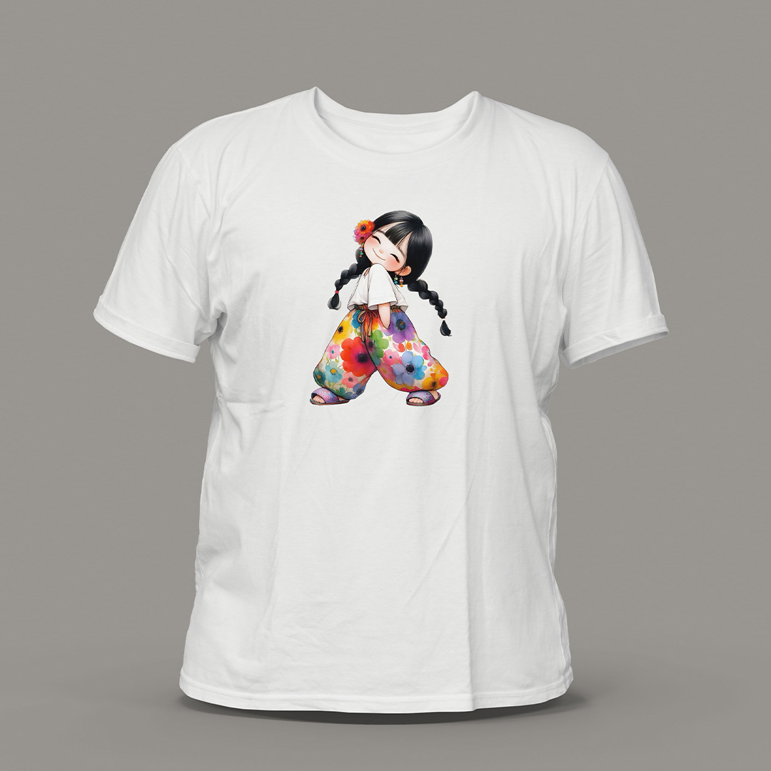 تیشرت زنانه با چاپ DTF یک‌رو با جنس نخ پنبه رنگ سفید. پشت و رو شسته شود و از سفید کننده استفاده نشود. با آب سرد (حداکثر ۳۰ درجه) شسته و زیر نور مستقیم خورشید خشک نشود. قبل از خرید به جدول سایز دقت کنید.